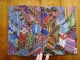 Mamadou Cissé regarde le monde d’un point de vue surplombant : il crée des villes multicolores dont les lignes – celles des rues et des bâtiments – semblent former comme la trame d’un tissu. Dessinées à la règle, au feutre et au bic, ses cités se quadrillent de hautes tours colorées et de longues avenues, traversées d’un flot de voitures et de trains silencieux, glissant sur des voies qui s’enchevêtrent et se superposent. Vertige des hauteurs, vertige des profondeurs.