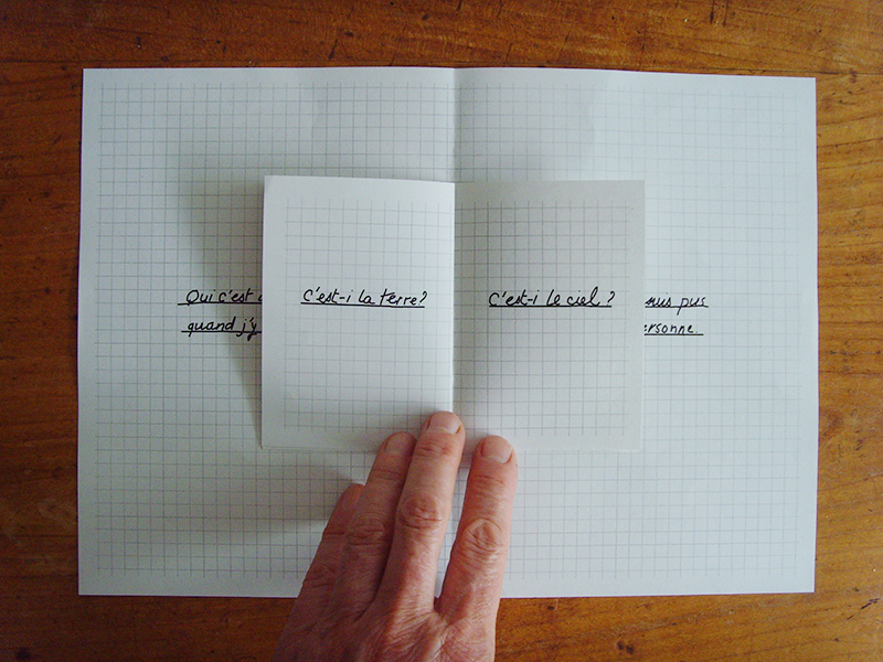 > feuille A3 pliée, coupée, pages assemblées et cousues, format 14,85 x 21 cm