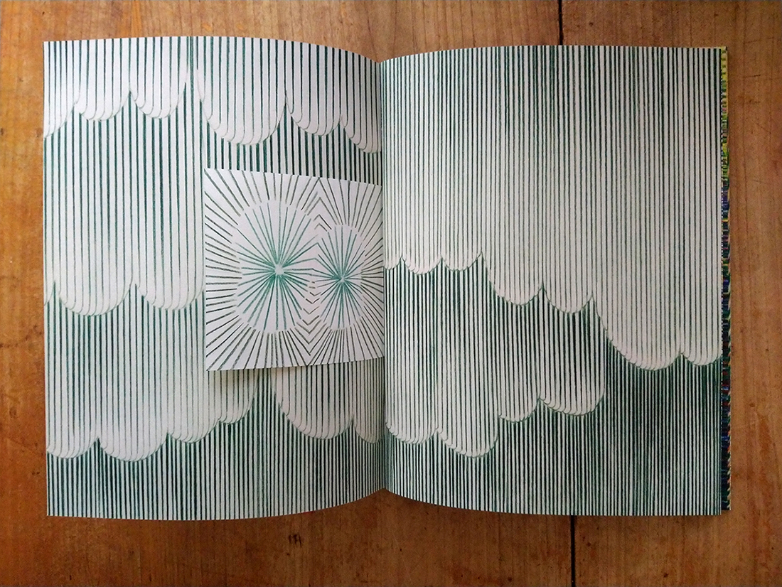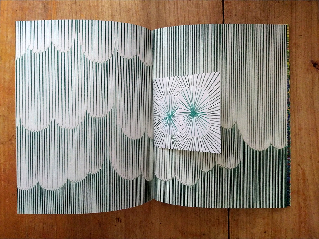 > 32 printed pages in color + small pages (with handmade drawings) inserted